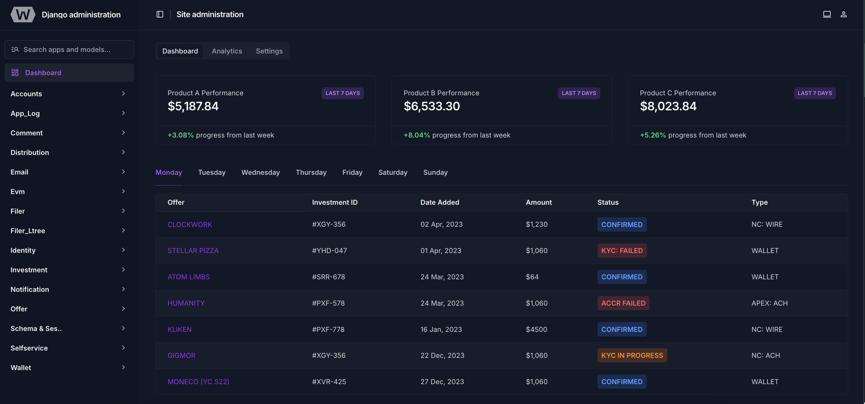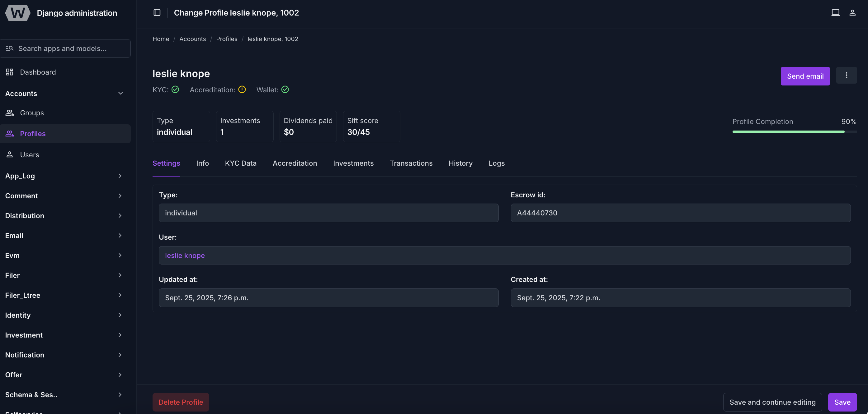 Now that you are comfortable with the basic mechanics of the admin panel, the next step is to understand how all these data sections connect. We highly recommend reading the djadmin big picture next to understand the full lifecycle of our RWA platform.